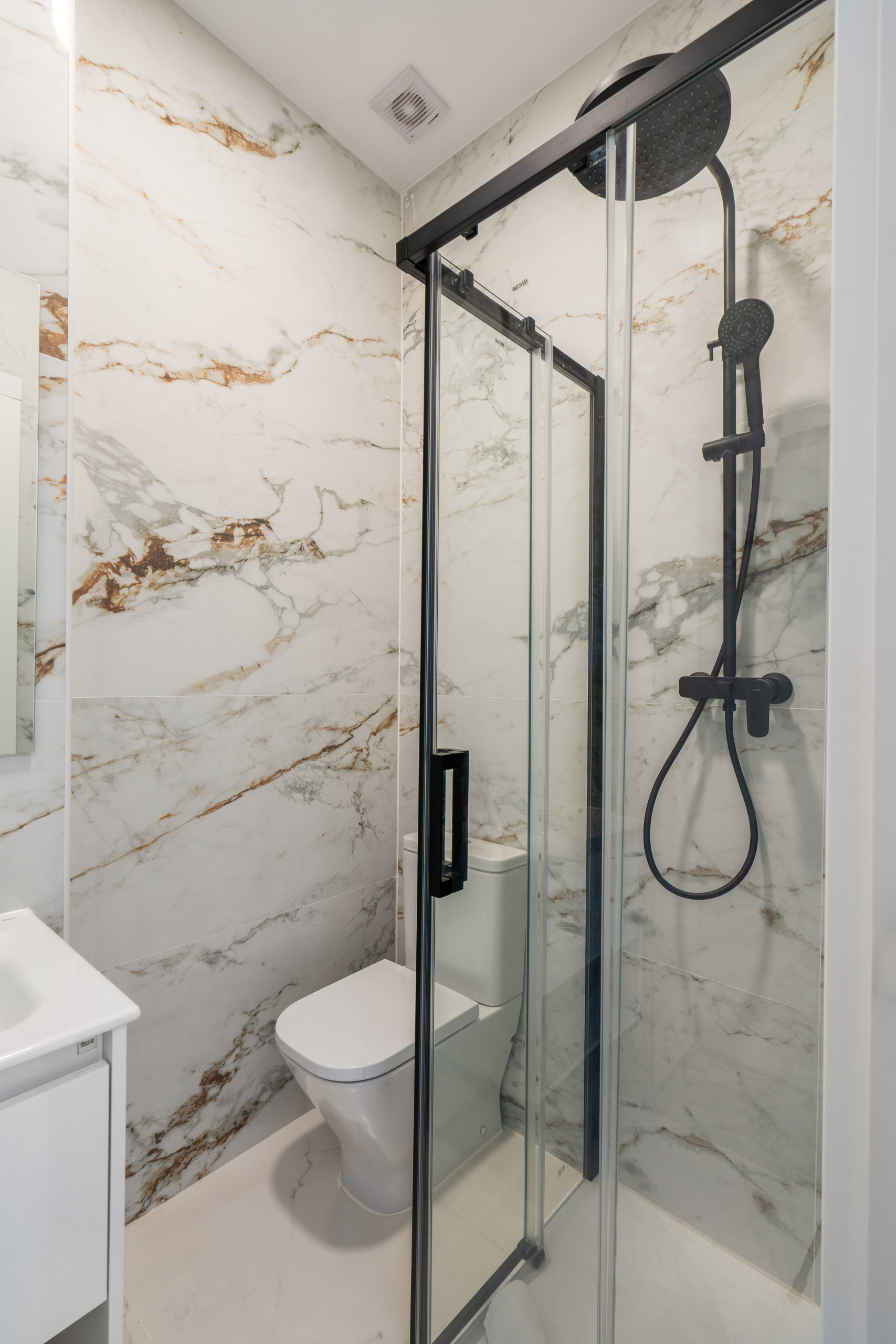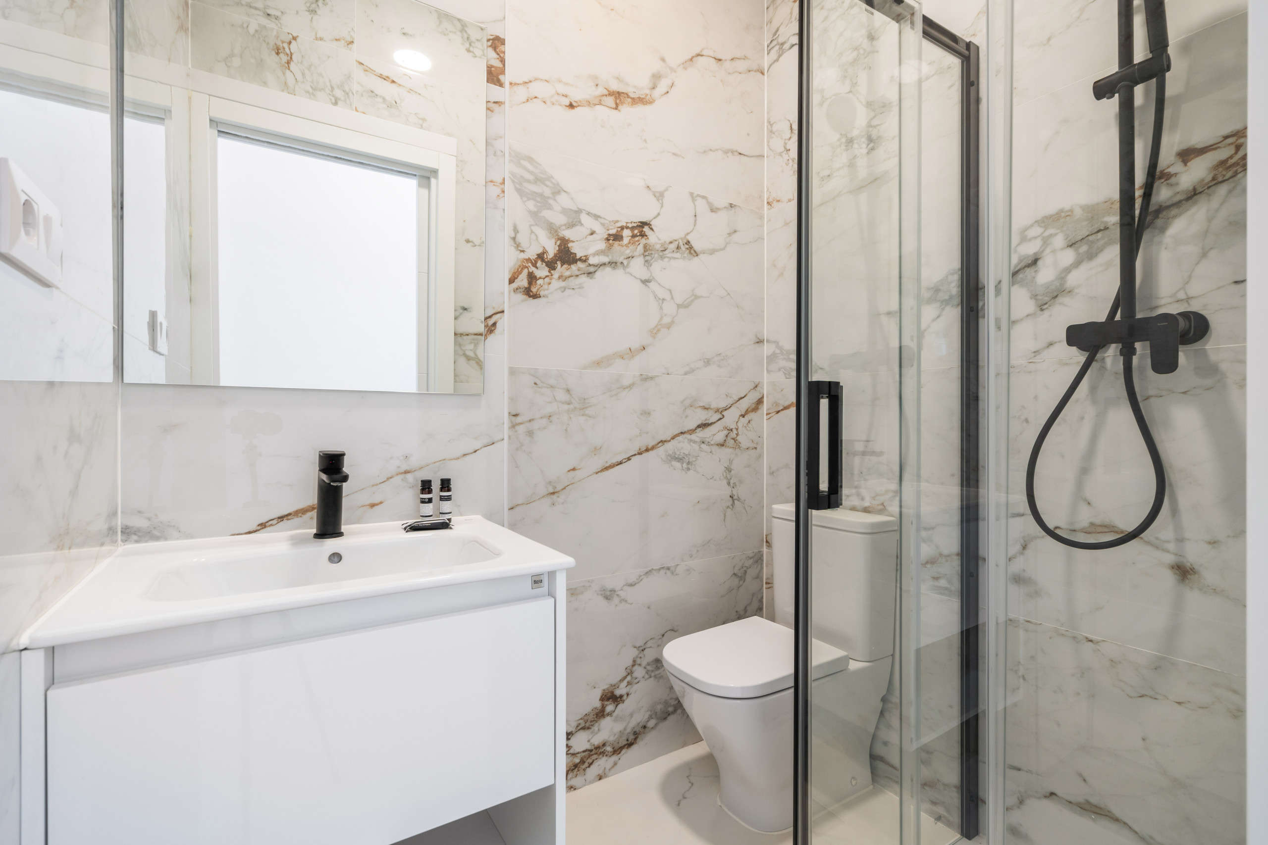 El Baño: Moderno y funcional, con una amplia ducha tipo lluvia, toallas de algodón esponjosas, secador de pelo y artículos de aseo gratuitos (gel, champú).