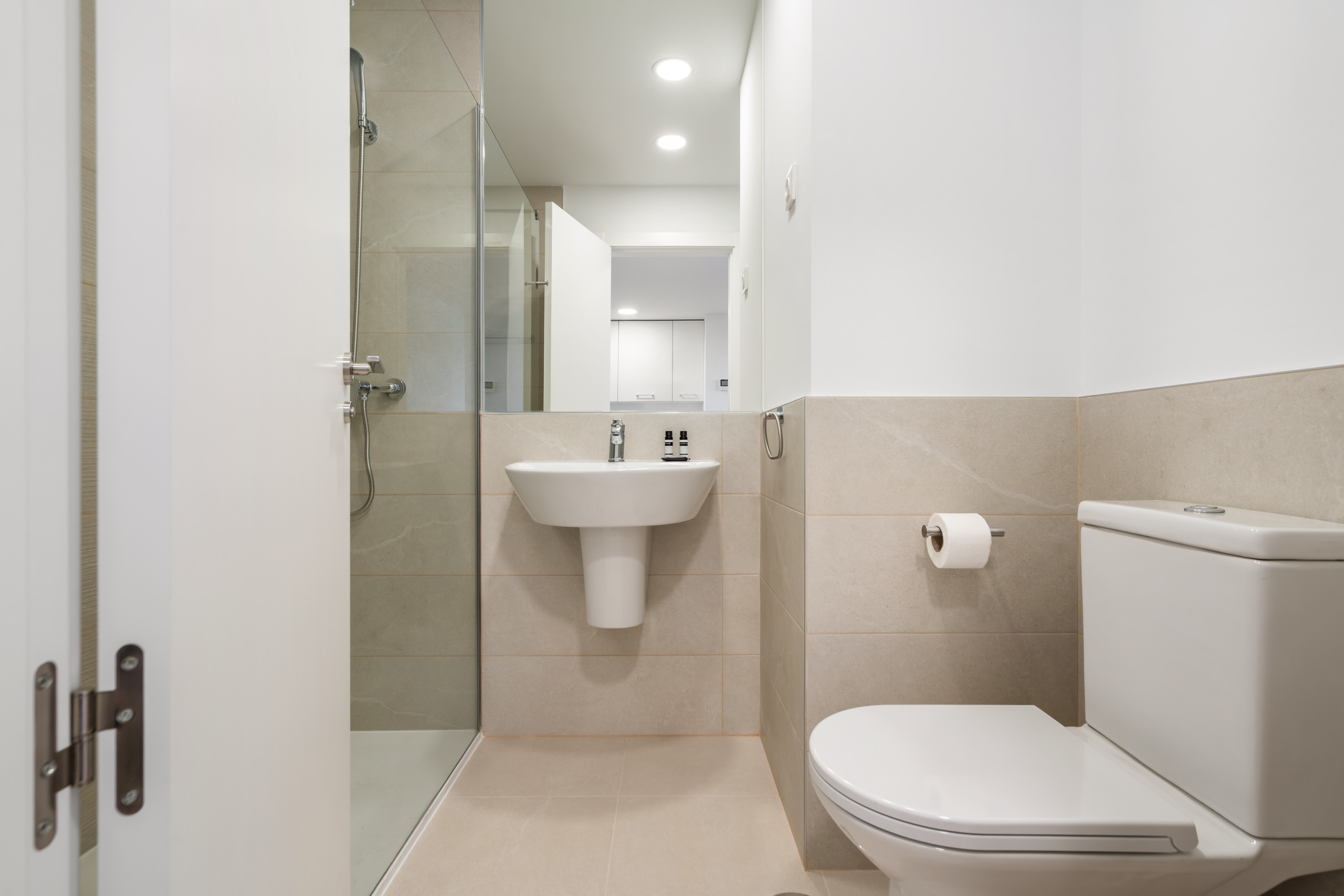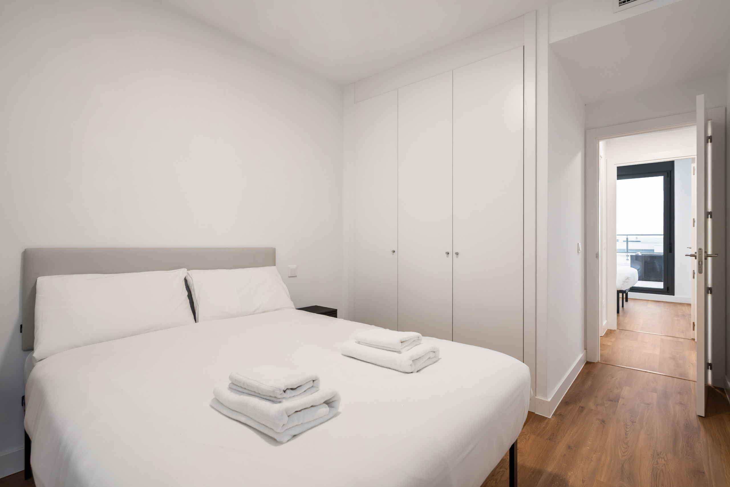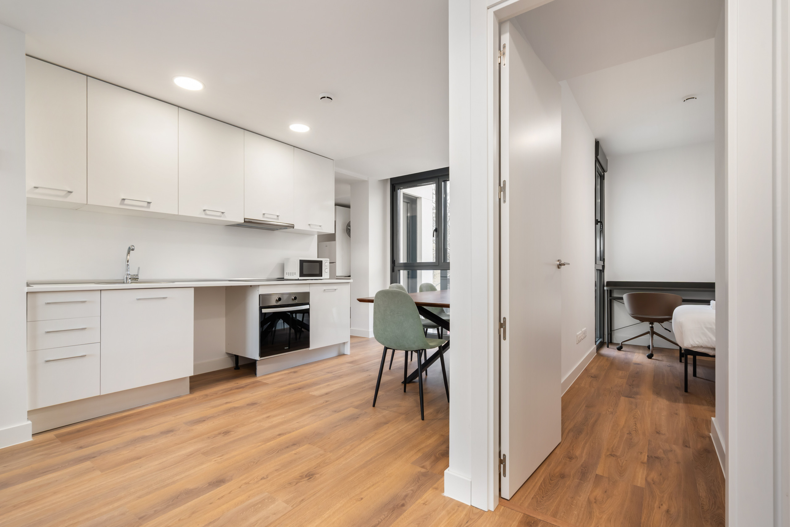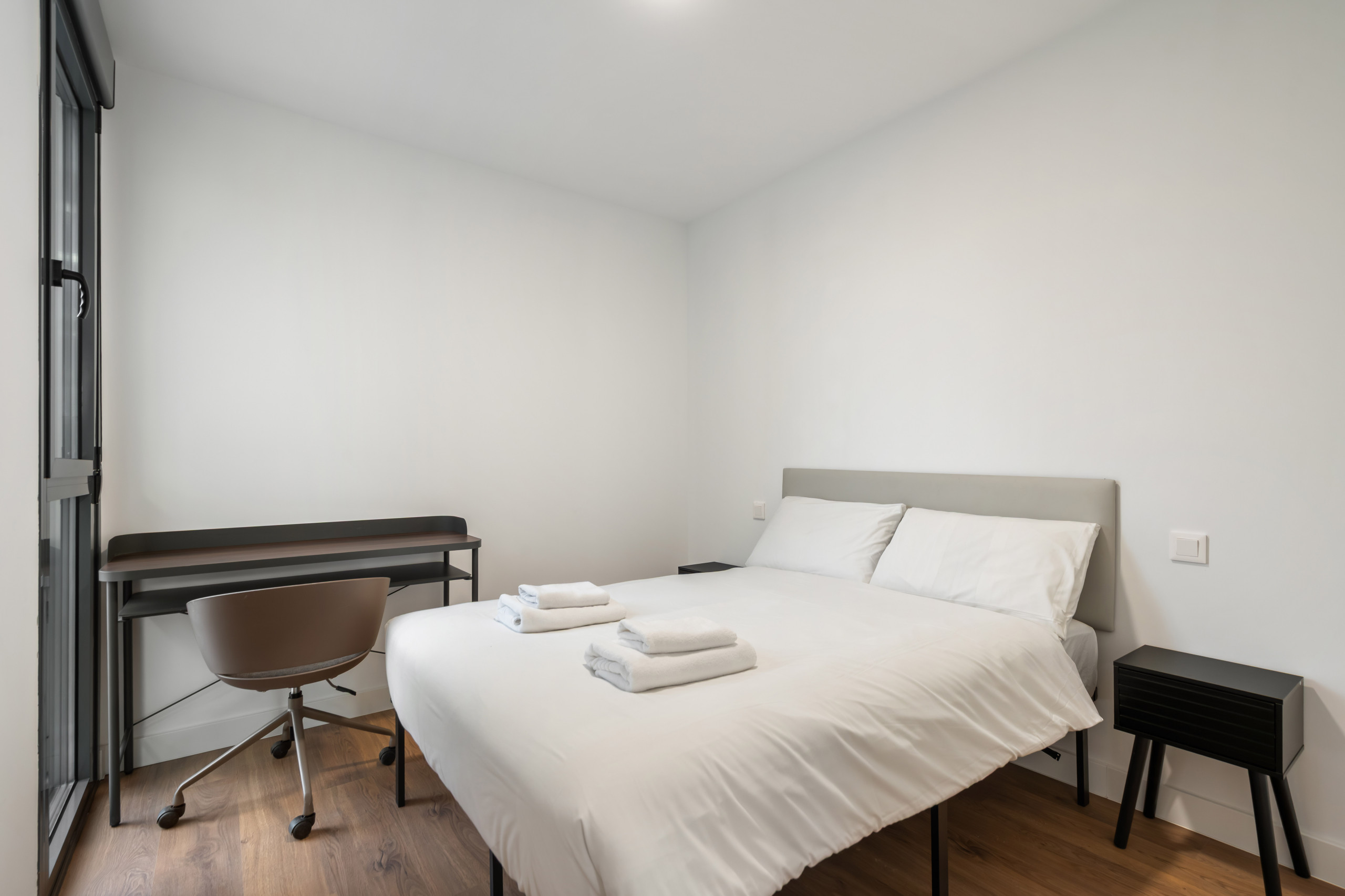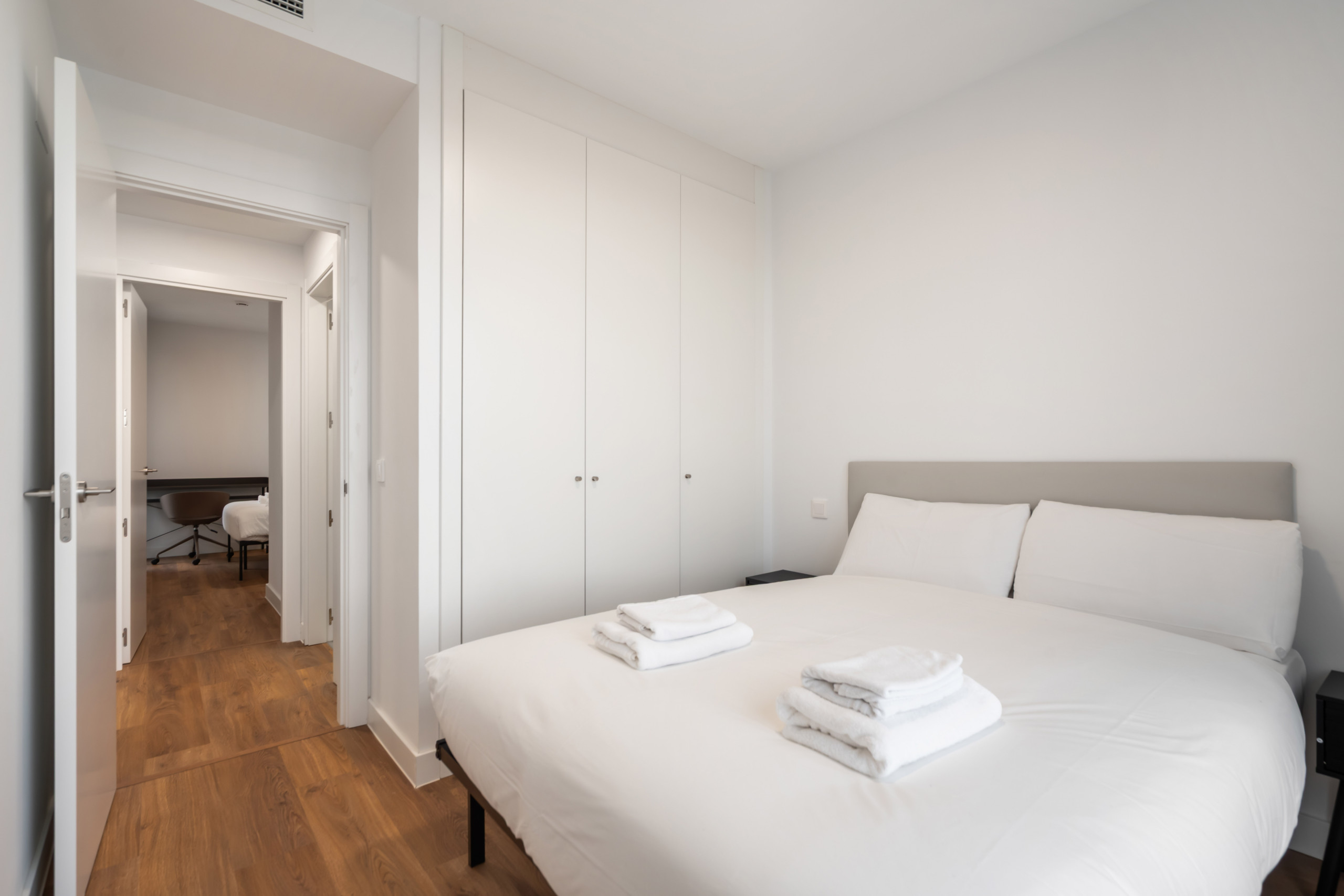A diferencia de un estudio o un loft abierto, aquí disfrutarás de la privacidad de dos dormitorios independientes, ideal para compañeros de trabajo o para quien necesita separar la zona de descanso del área de trabajo.
