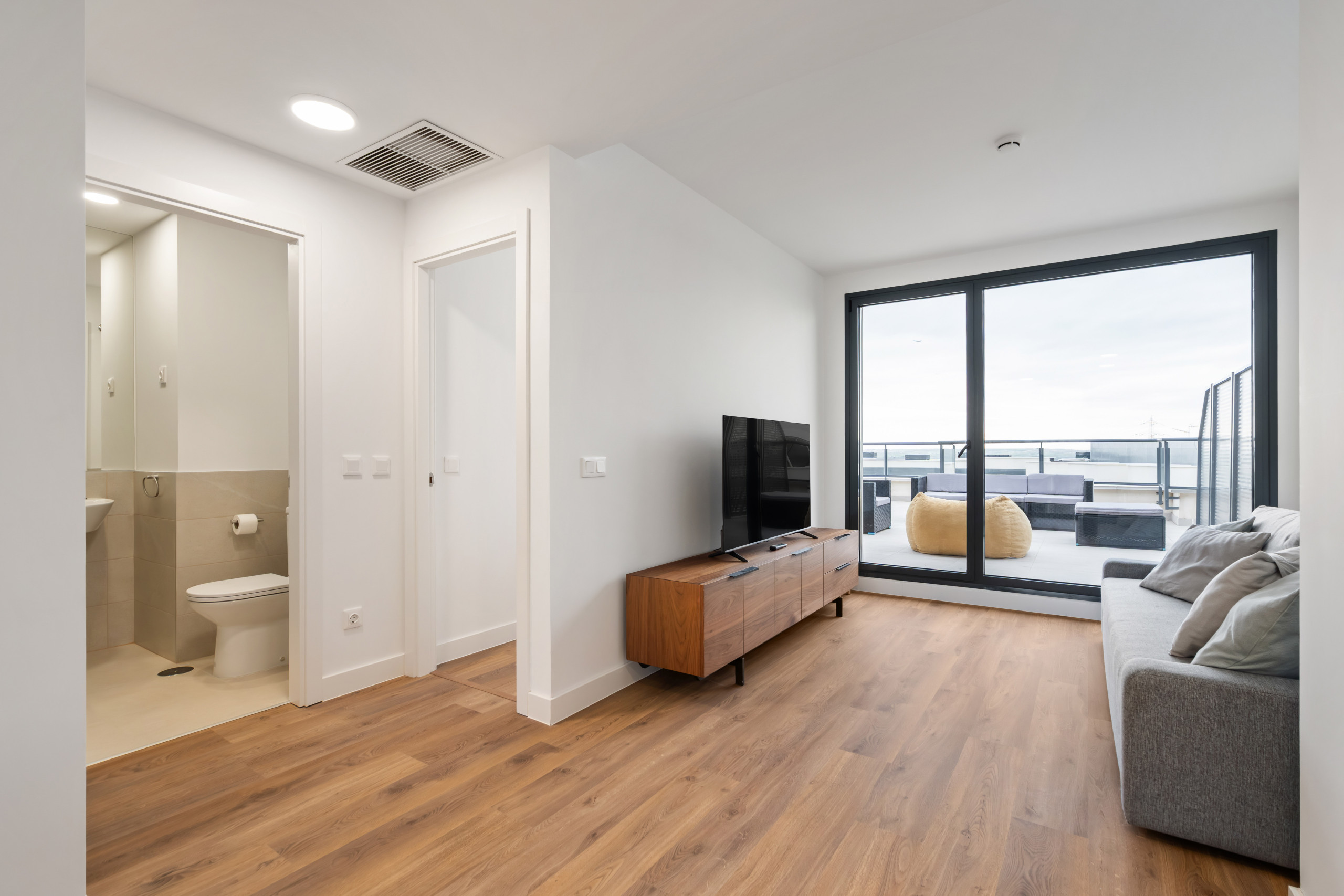 El espacio El apartamento, de obra nueva y estilo moderno, cuenta con todo lo necesario para una estancia productiva y relajante: